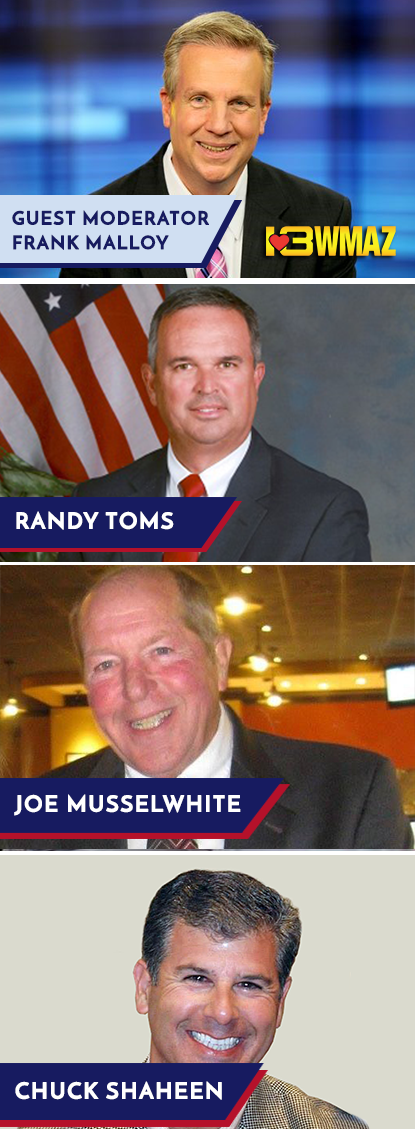 In partnership with Central Georgia Technical College and 13WMAZ, the Robins Regional Chamber hosted a Candidate Forum for Warner Robins Mayoral Candidates on October 3rd, 2017 at the CGTC Auditorium. 13WMAZ’s Frank Malloy moderated the forum alongside a panel of local leaders: Michael Chalmers, Board Chairman of the Robins Regional Chamber and franchise owner of seven Spherion Staffing Service locations in Georgia and Alabama; Jade Morey, Director of Existing Industry at the Houston County Development Authority, Vice Chairwoman of the Georgia Young Republicans, and President of War Town Young Republicans; William Vaught, Chair of Houston County GOP; and Wilhemenia Sibley, President of Middle Georgia Democratic Women. Candidates were given the opportunity to introduce themselves, describe their qualifications for office, and answer questions from the panelists. Topics of the discussion centered around tax allocations, crime, economic efficiency and form of government.